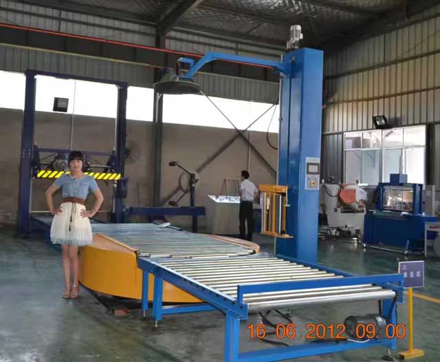 托盤在線式纏繞機(jī)現(xiàn)場案例合影